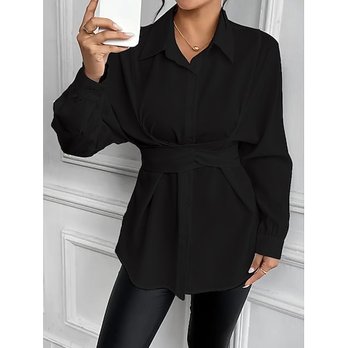 Per donna Blusa Bottoni Tinta unica Elegante Essenziale Casual Manica Lunga Colletto a Camicia Top Regolari Quotidiano Nero Bianco Primavera Autunno Inverno
