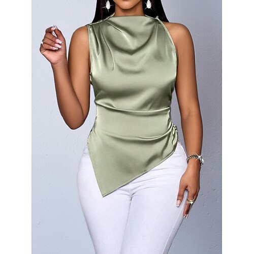 Per donna Camicia Camicia in raso Blusa Maglietta senza maniche Asimmetrico Semplice Elegante Classico Moderno Senza Maniche Collo Alto Top Regolari Quotidiano Ferie Uscire Giallo Azzurro cielo Verde