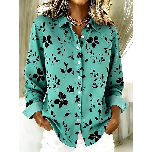 Per donna Camicia Bottoni Stampato Floreale Grafico Vintage Elegante Moderno Manica Lunga Colletto a Camicia Top Regolari Quotidiano Blu Giallo Viola Verde Estate Primavera