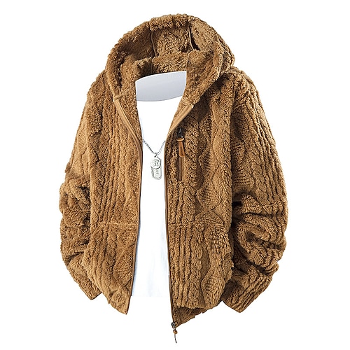 Per uomo Giacca Invernale Cappotto Teddy Giacca Casual Vacanza Quotidiano Calore Termico Tasca Pile Autunno Inverno Semplice Moda Streetwear Con Cappuccio Regolare Nero Marrone Caffè Giacca