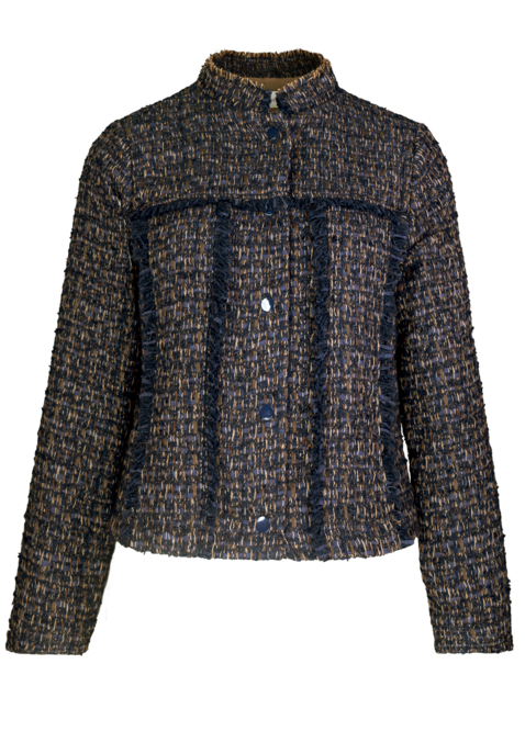 Jackenblazer CARTOON "Cartoon Tweedblazer mit Fransen", Damen, Gr. 40, orange (cream, orange), Obermaterial: 75% Baumwolle, 19% Polyester, 3% Polyamid, 3% Viskose. Ärmelfutter: 100% Acetat., modisch, gerade normal, Rundhals, 3/4-Ärmel, Blazer, Fransen