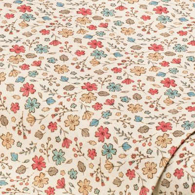 Tissu coton "fleurs nostalgiques", écru naturel/coloré