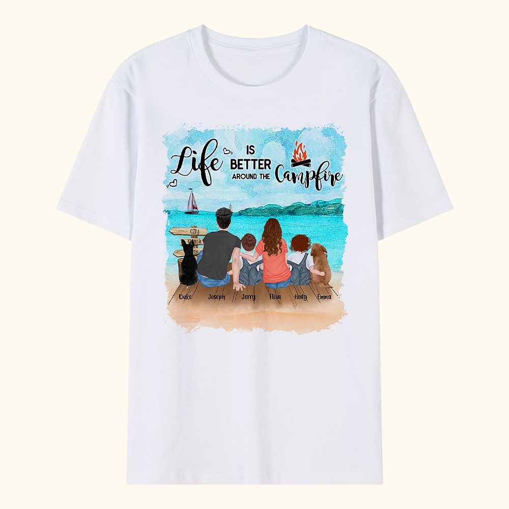 T-shirt adulte et T-shirt enfant personnalisés Life Is Better Around The Campfire (La vie est plus belle autour du feu de camp) Cadeau d'anniversaire