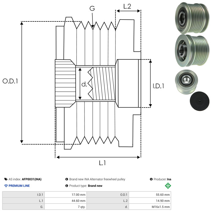 AS-PL Generatorfreilauf AFP0031(INA) für MERCEDES-BENZ A2711550115 A2711550016 2711550016