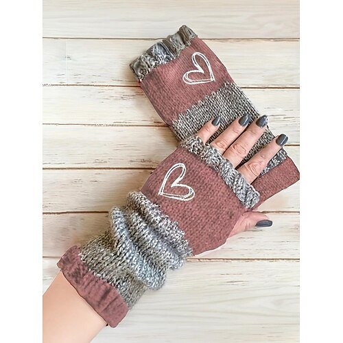 Guanti natalizi da donna in maglia con motivo a cuore ricamato, vari colori, comodi accessori invernali per le festività