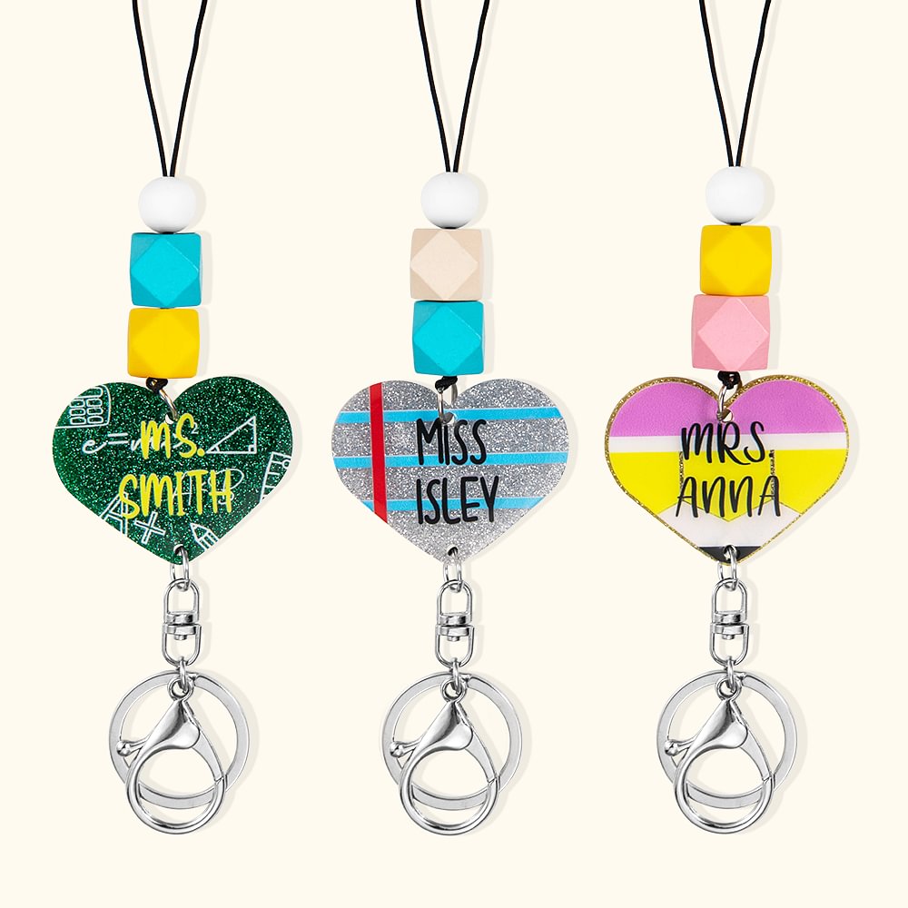 Cordoncino per insegnanti personalizzato a forma di cuore e perline colorate