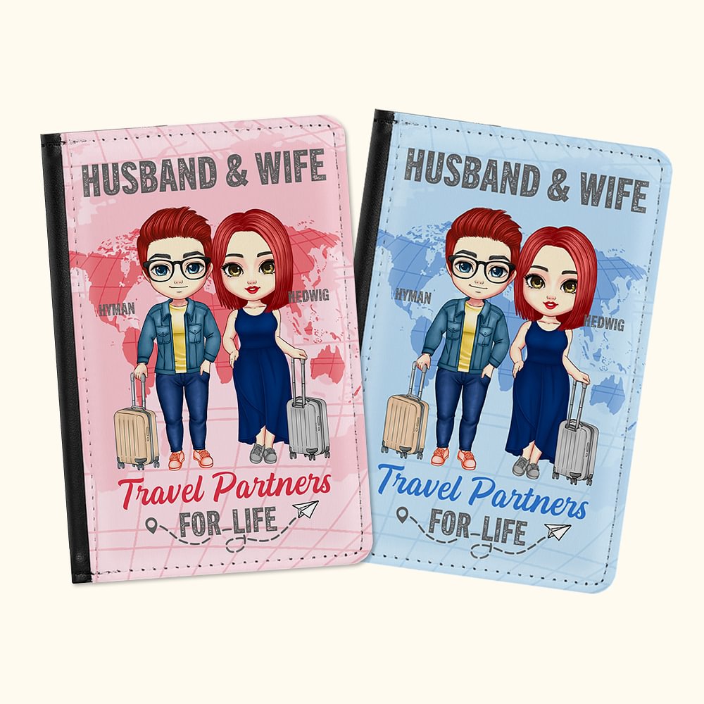 Mappa personalizzata a tinta unita Marito e moglie partner di viaggio per la vita Copertina del passaporto Regalo di San Valentino per la coppia
