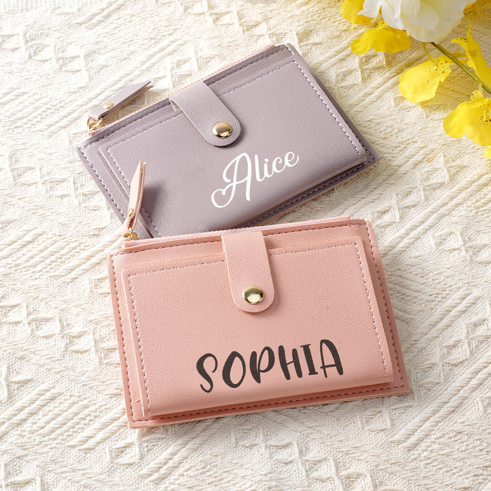 Portafoglio in pelle PU personalizzato con nome semplice e slot per carte Regalo di compleanno per le damigelle d'onore, doccia nuziale e anniversario