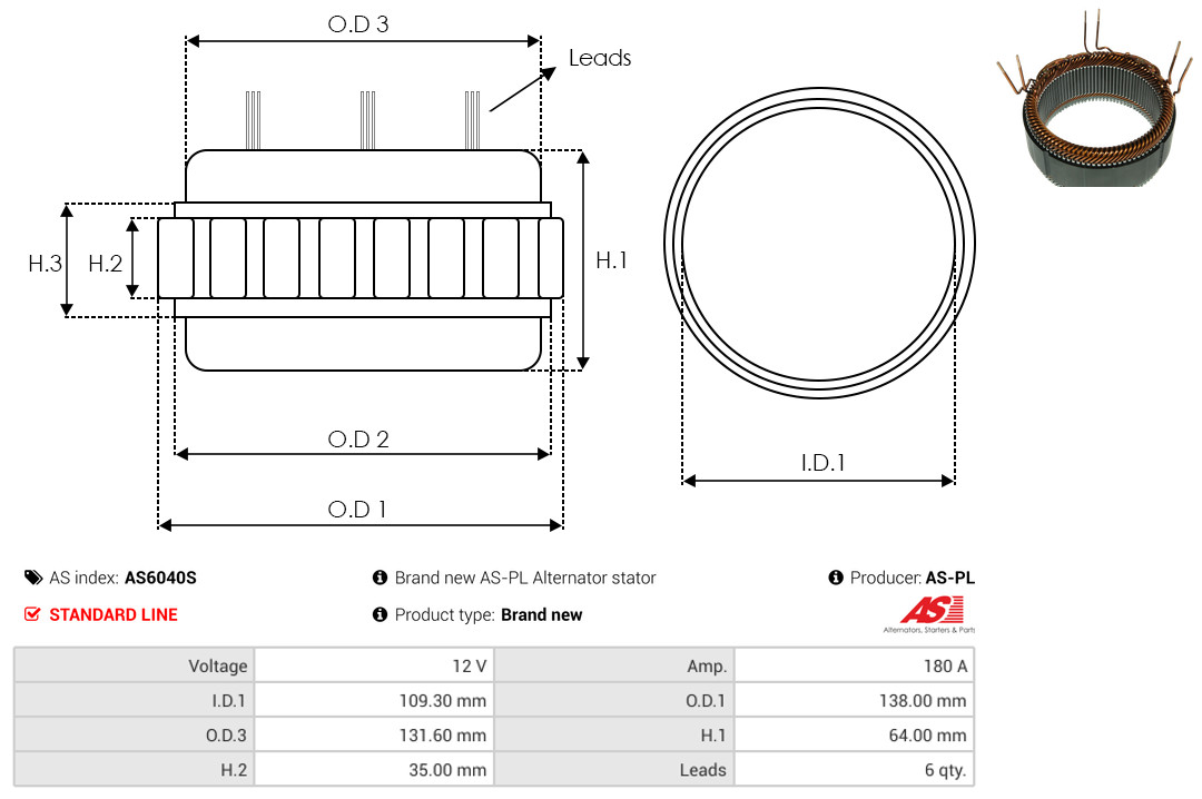 AS-PL Stator, Generator AS6040S Universal 12V 180A für TOYOTA 27360-51050 27360-38140 27360-38130