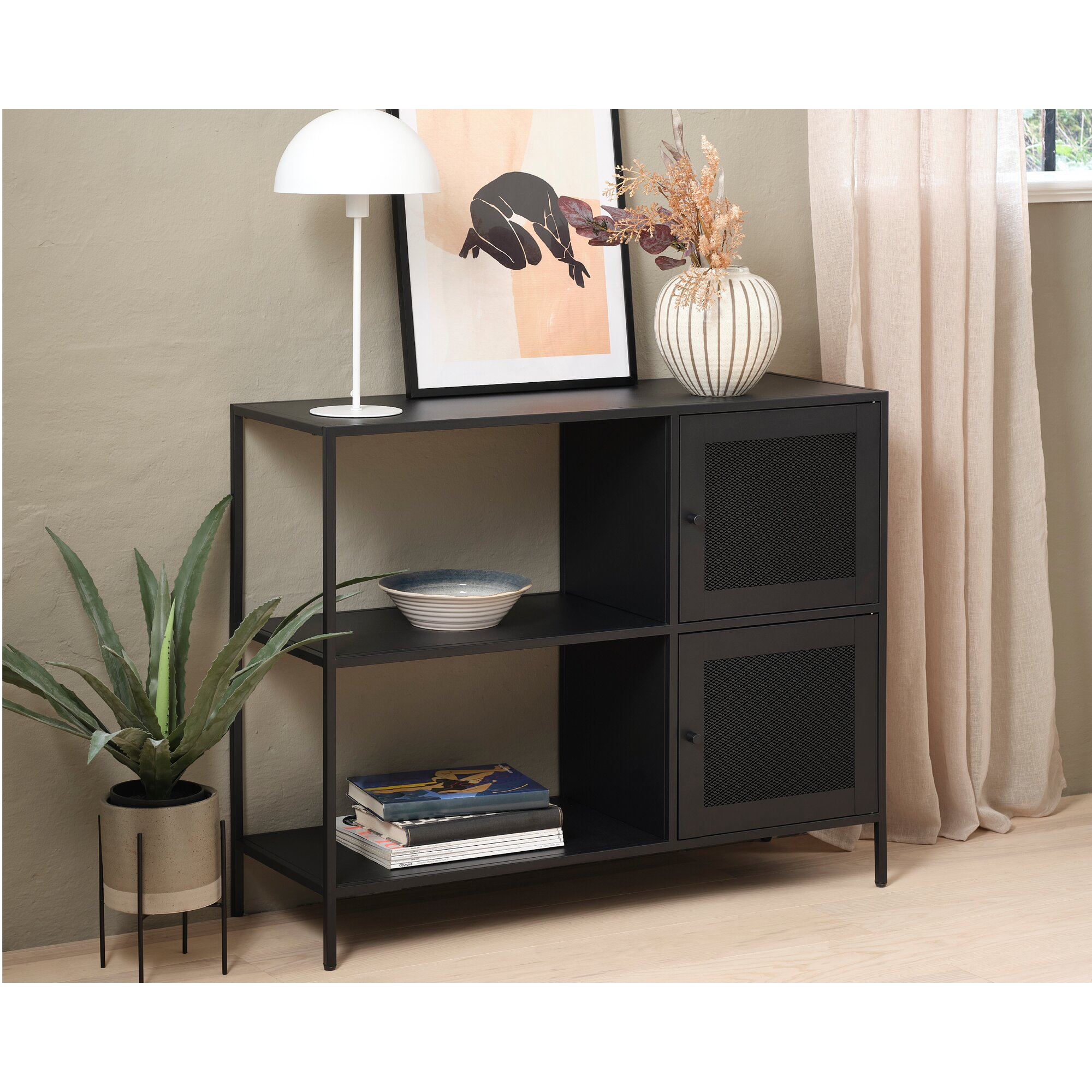 andas Wandregal "Borken, Regal, Ablage, Wandboard" aus Metall, Ablagefläche aus massiver Eiche natur, schwarz B/H/T: 30cm x 60cm x 20cm, Mit 2 Ablagen