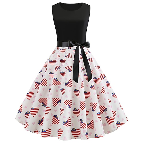 Anni 1950 Americano 250 Retrò Vintage Vestito Abito Swing Senza maniche Linea ad A Costume Per donna 4 Luglio Giorno dell'Indipendenza Semiquincentenario Adulti Vestito Primavera Estate