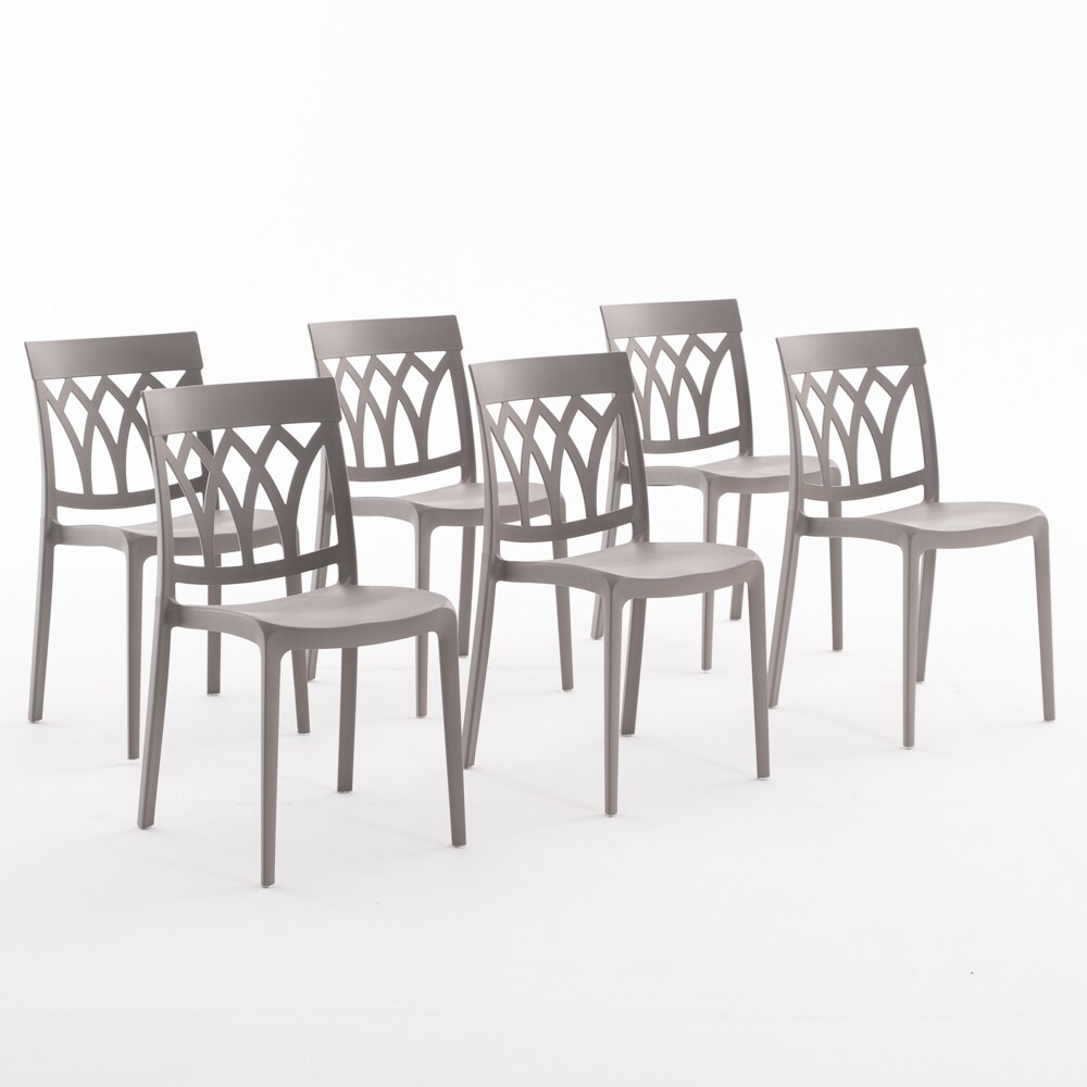 RATTATAN 6er-Set stapelbare Stühle aus Polypropylen mit Glasfasern für Außenbereich und Garten, Bar und Restaurant, Küche modernes Design - EMMA - Taubengrau