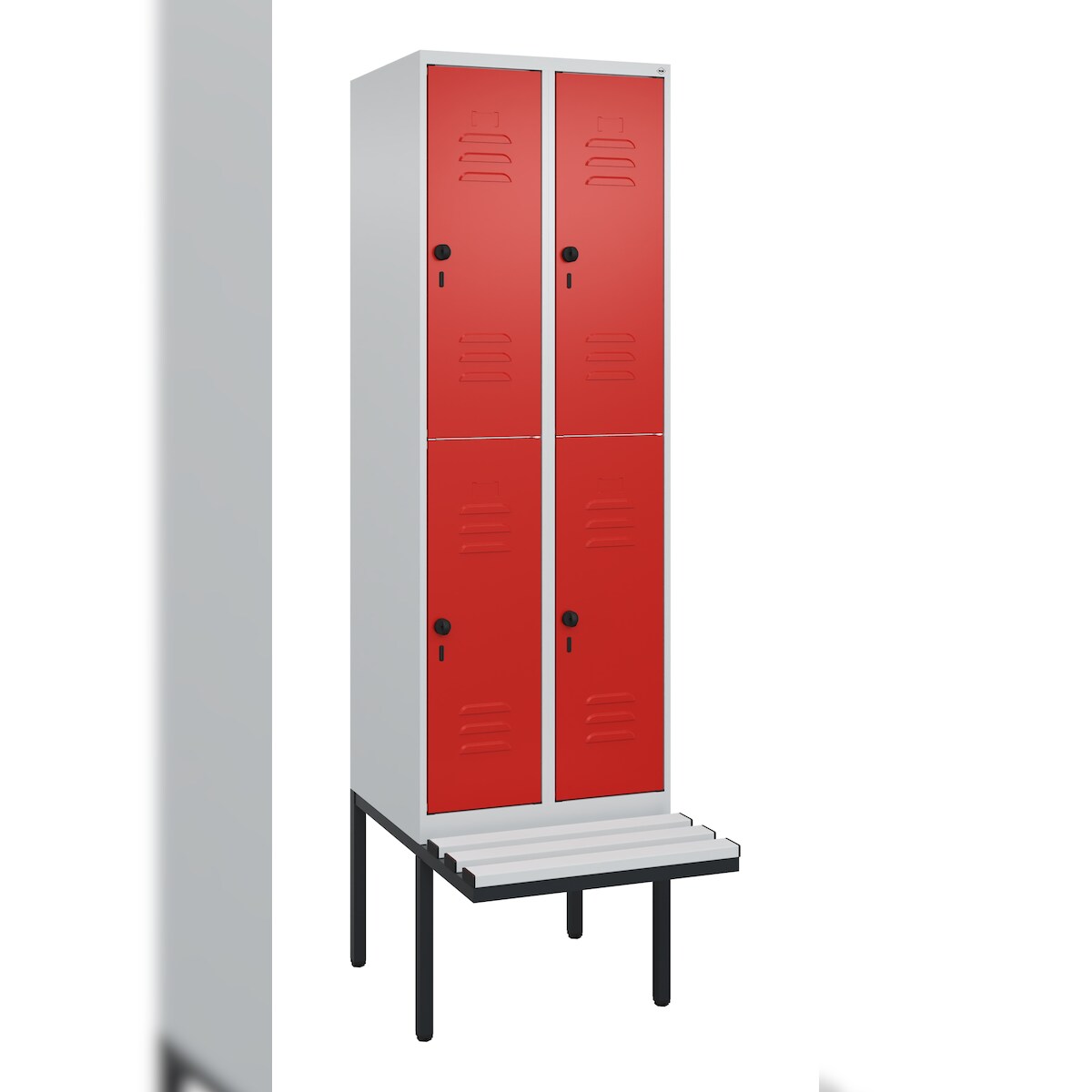 C+P Spind Classic PLUS, Kunststoff schwebende Sitzbank, 4 Abteile, HxBxT 212x60x82cm, Sicherheitsdrehriegel, Hellgrau/Rot von PROREGAL