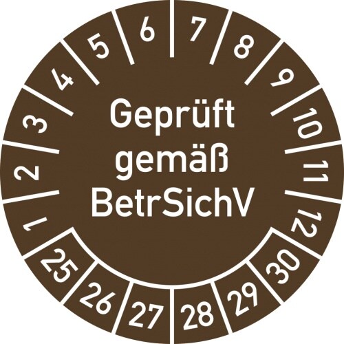 Dreifke® Prüfplakette Geprüft gemäß BetrSichV, 2025-2030, Folie, Ø 30 mm, 10 Stück/Bogen