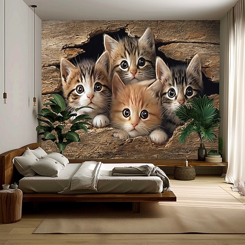 Arazzo da parete con gatto 3D, simpatico gattino che fa capolino, decorazione da parete realistica, grande poster in tessuto per camera da letto e soggiorno.