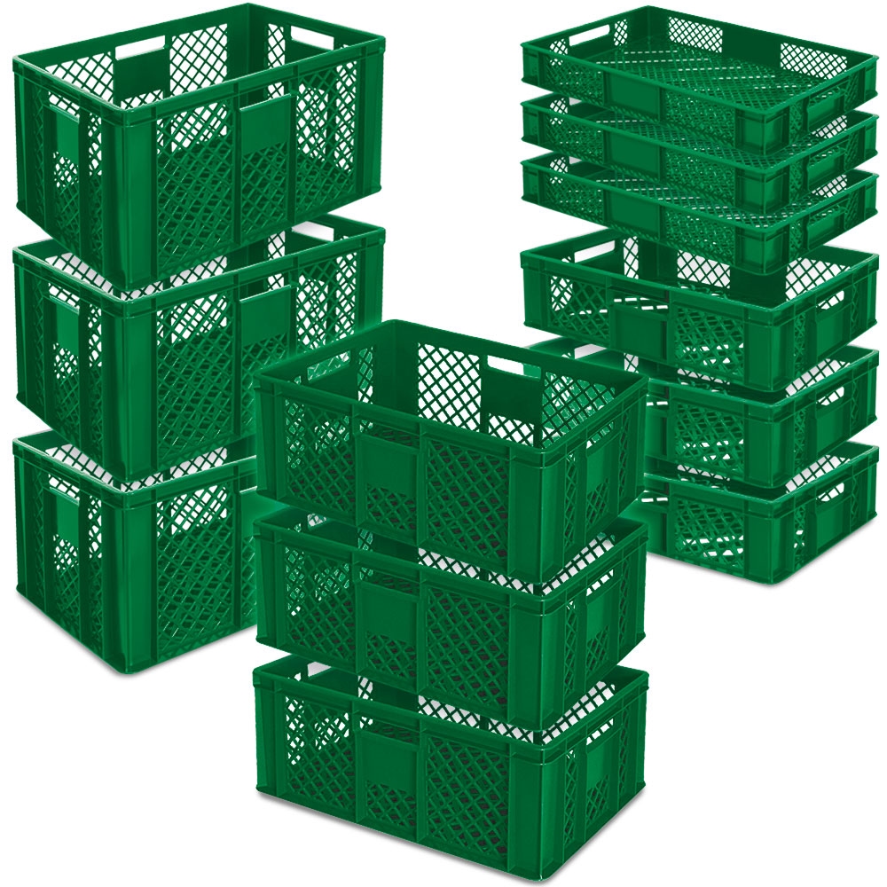 BRB 12x Stapelkorb/Bäckerkisten in 4 Größen, Grundmaß LxB 600 x 400 mm, H 90 mm, 150 mm, 240 mm, 320 mm, Farbe grün