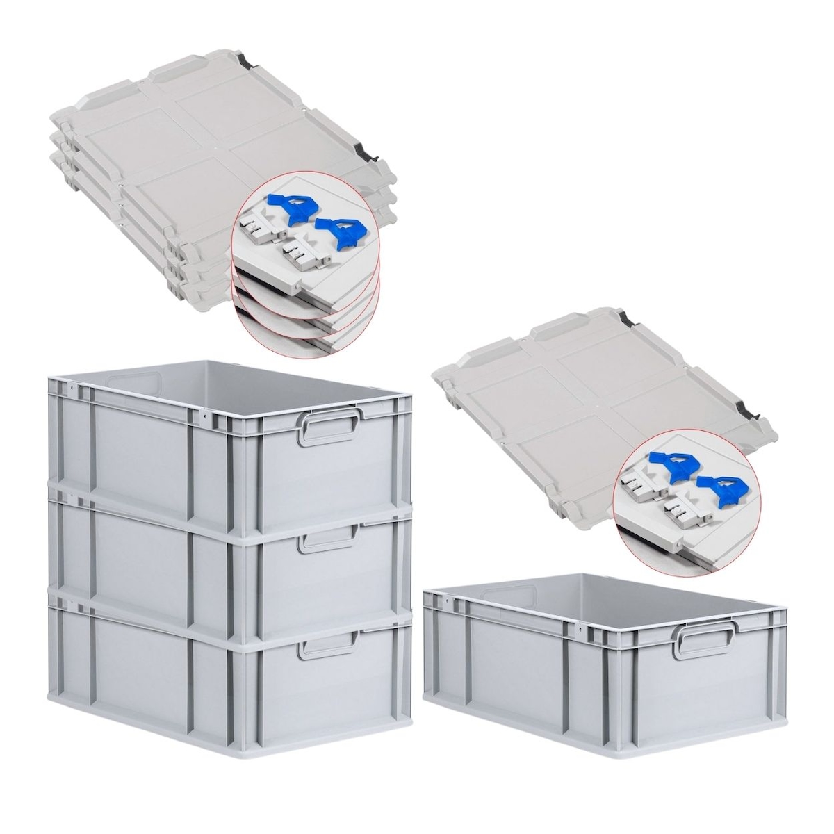 PROREGAL 5x Eurobox NextGen Grip mit Scharnierdeckel & schwarzen Verschlüssen | HxBxT 22x40x60cm | 44 Liter | Griffe geschlossen | Verstärkter Boden