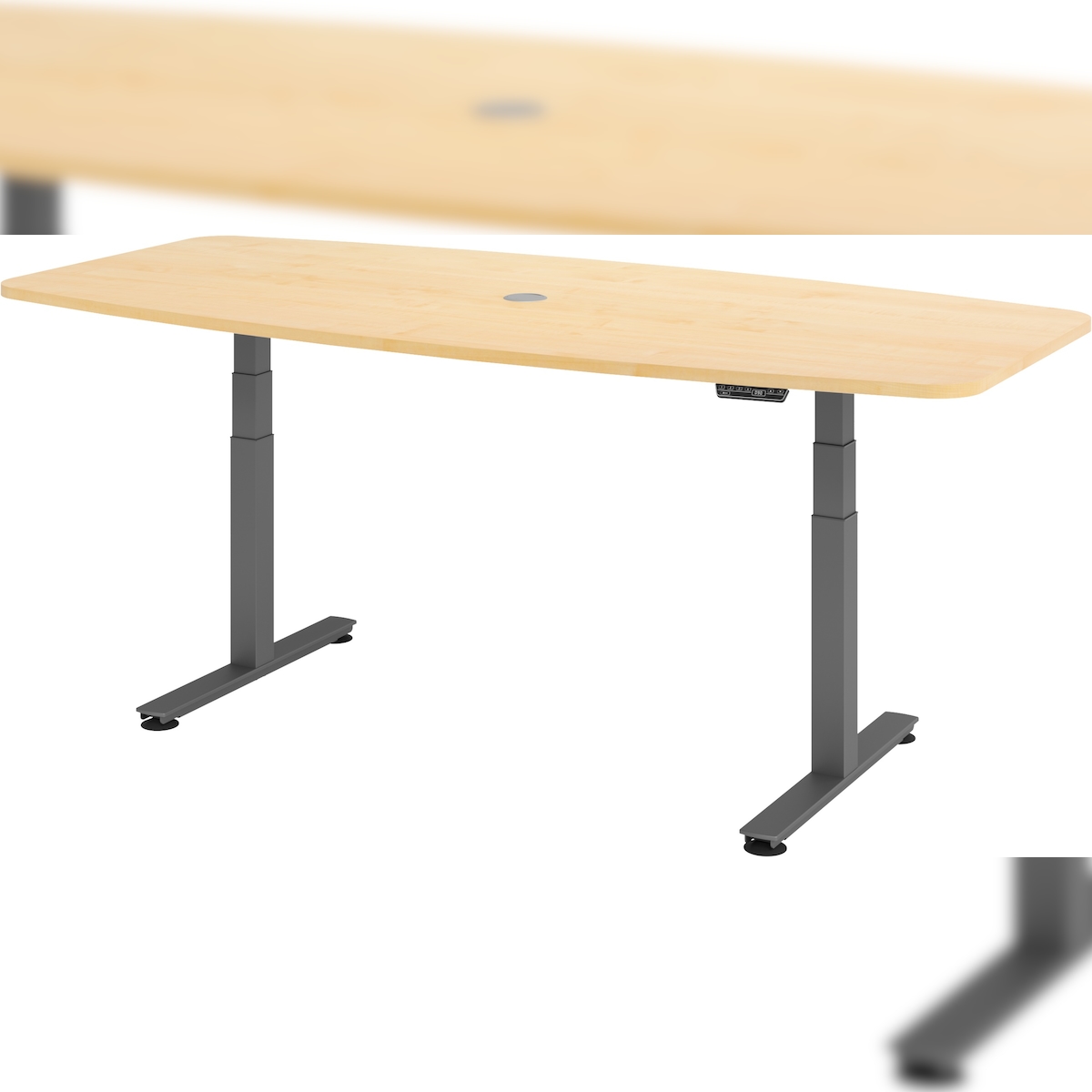 bümö Konferenztisch elektrisch höhenverstellbar 220x103 in Ahorn, Gestell: Graphit - elektrischer Besprechungstisch oval mit Memoryfunktion