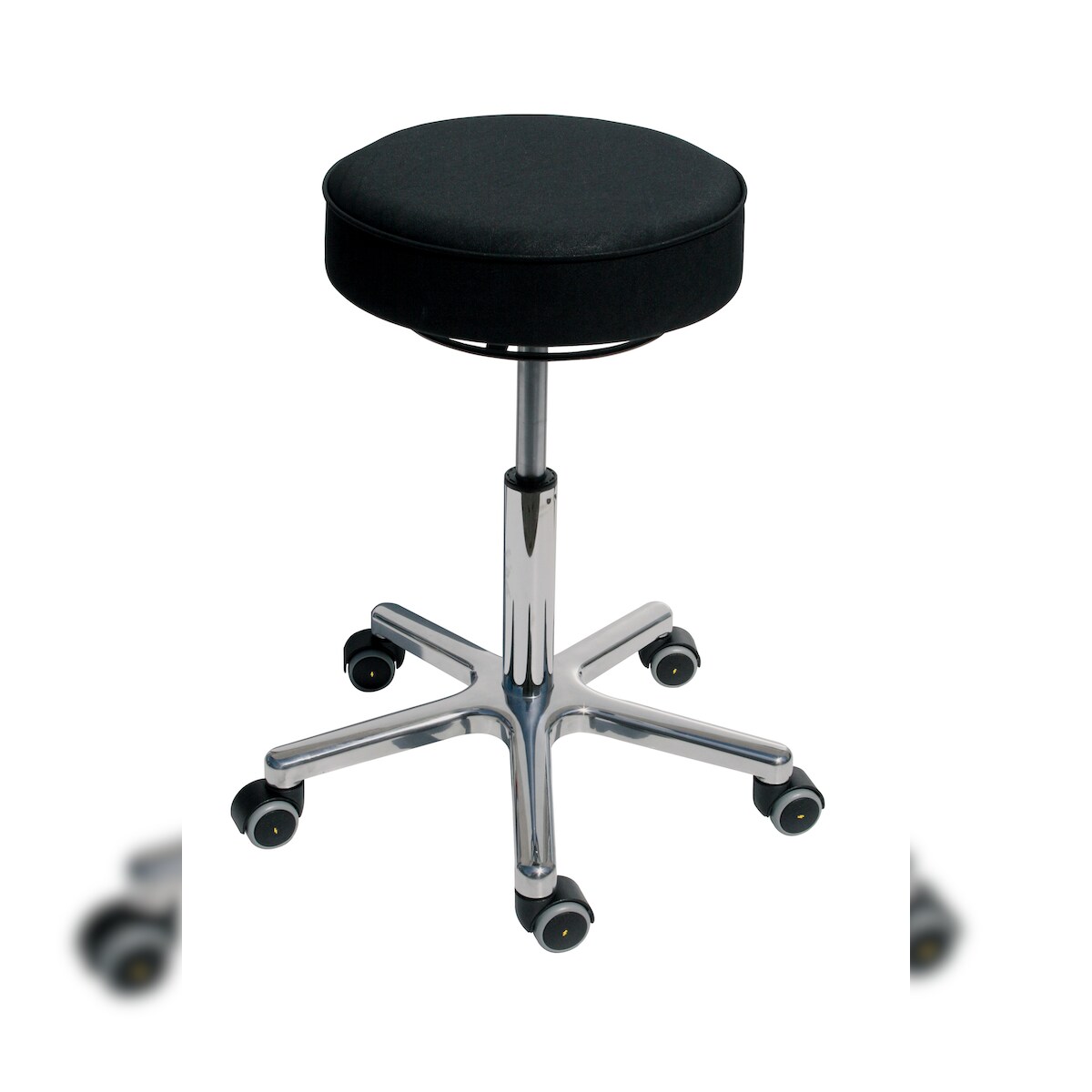 PROREGAL Antistatischer Drehhocker Indianapolis, ESD-Sitz, Sitzhöhe 44-62cm, Tragfähigkeit 110kg, Polyurethane-Sitz, Aluminium-Fußkreuz, Rollen