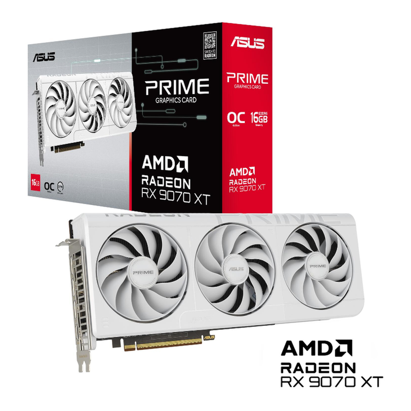 ASUS Prime Radeon RX 9070 XT weiß OC Edition 16 GB GDDR6 Gaming-Grafikkarte (AMD Radeon RX9070XT RDNA 4, 2,5-Slot, PCIe 5.0, 1x HDMI 2.1b, 3x DisplayPort 2.1a, weiß, PRIME-RX9070XT-O16G-WHITE)