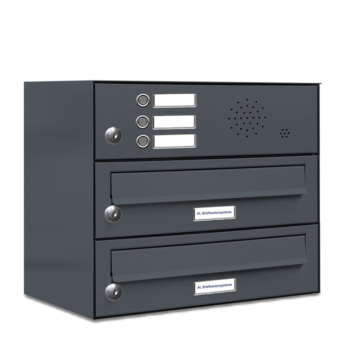 AL Briefkastensysteme 2 Fächer Premium Wand Briefkasten Anlage in RAL 7016 Anthrazit Grau, Post A4, robust, wetterfest, Artikelnummer 132P2EA1K3SP7016