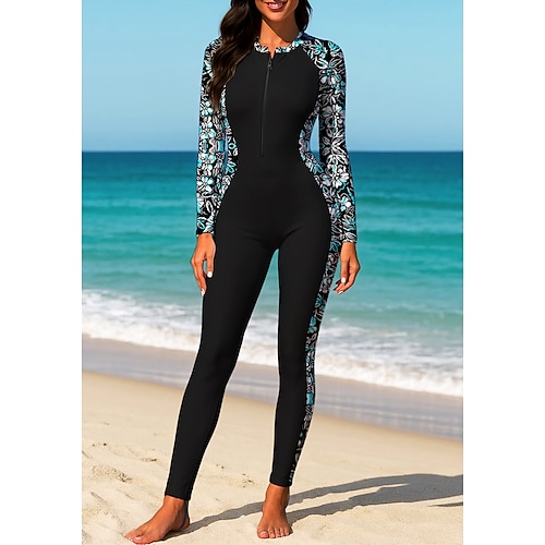 Per donna Costume da Bagno Rash Guard Floreale Protezione Solare UV UPF50 Asciugatura Rapida Spandex Manica Lunga Costume da Bagno costume da bagno Cerniera Frontale Surf Spiaggia Sport Acquatici