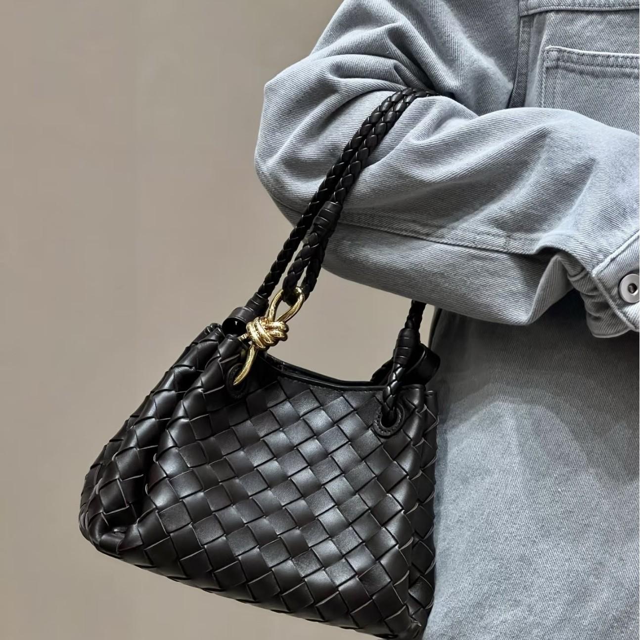 New Parachute Woven Bucket Bag Vegetable Basket Knotted Hardware Bag Premium Texture Popular Bag black