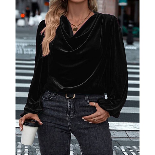 Per donna Velluto Elegant Elegante Blusa Tinta unica Semplice Elegante Signore Classico Manica Lunga All'americana Top Regolari Lavoro Quotidiano Ferie Arricciato Drappeggiato Nero Vino Blu Reale