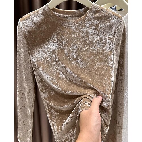 Per donna Velluto Elegant Elegante Blusa Semplice Elegante Vintage Quotidiano Manica Lunga Girocollo Top Regolari Quotidiano Ferie Uscire Nero Bianco Blu Cachi Albicocca Primavera Autunno Inverno