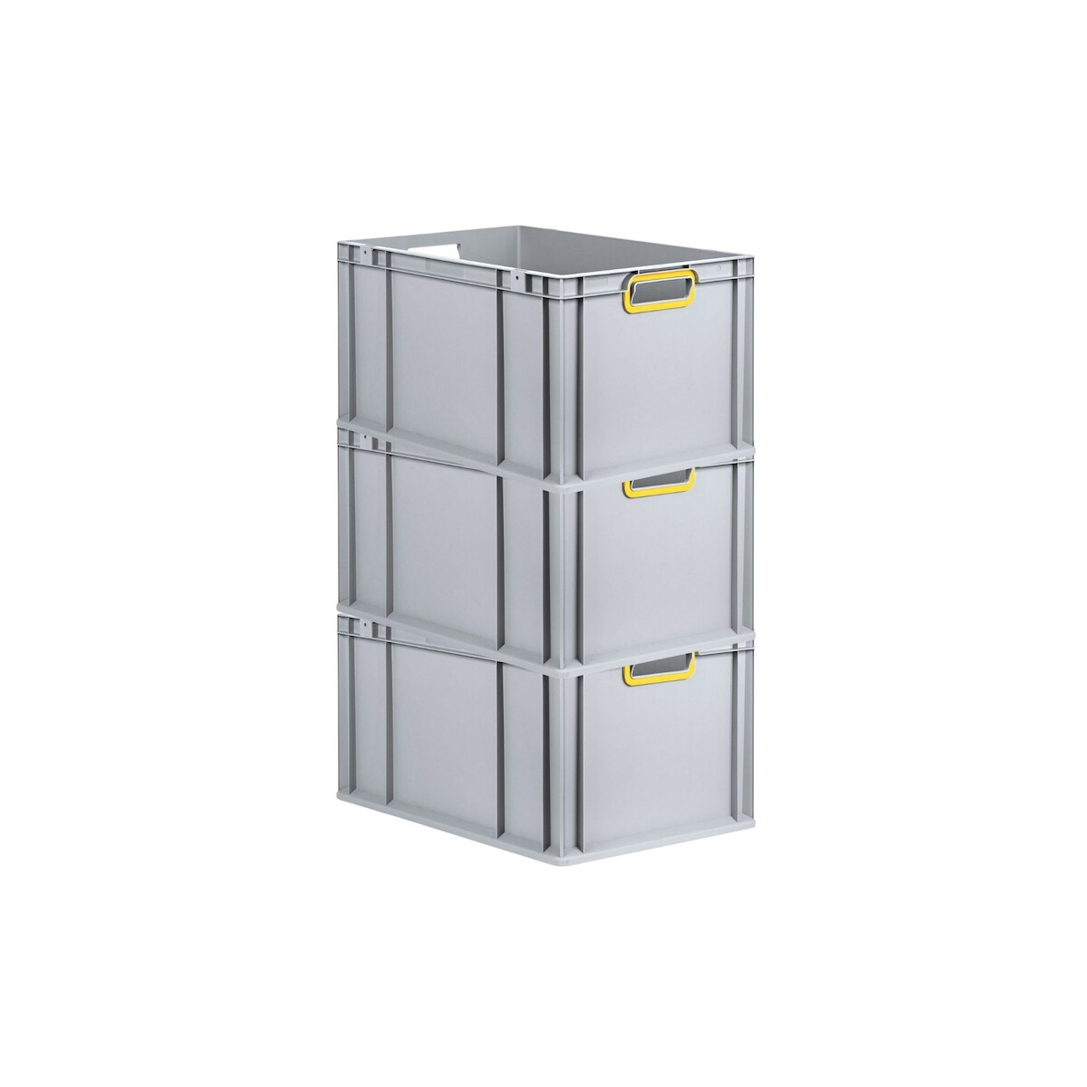 PROREGAL 3x Eurobox NextGen Color | HxBxT 22x40x60cm | 65 Liter | Griffe gelb offen | Verstärkter Boden | Eurobehälter