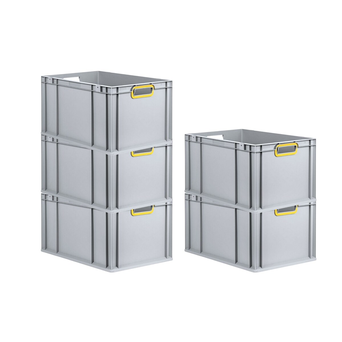 PROREGAL 5x Eurobox NextGen Color | HxBxT 22x40x60cm | 65 Liter | Griffe gelb offen | Verstärkter Boden | Eurobehälter