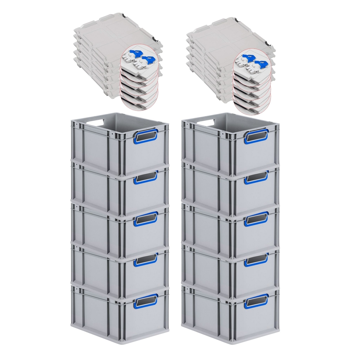 PROREGAL 10x Eurobox NextGen Grip mit Scharnierdeckel & blauen Verschlüssen | HxBxT 17x30x40cm | 16 Liter | Griffe offen | Glatter Boden