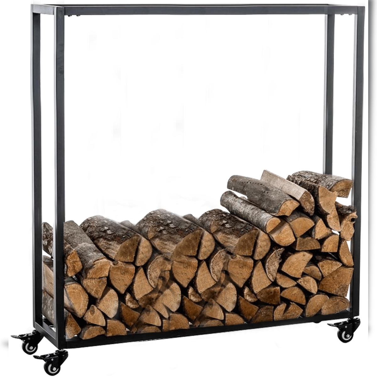 DELUKE® Kaminholzregal innen Metall BETTA mit Rollen, 25x80x100 Brennholzregal innen Kaminholzständer Kaminholzhalter Feuerholzregal