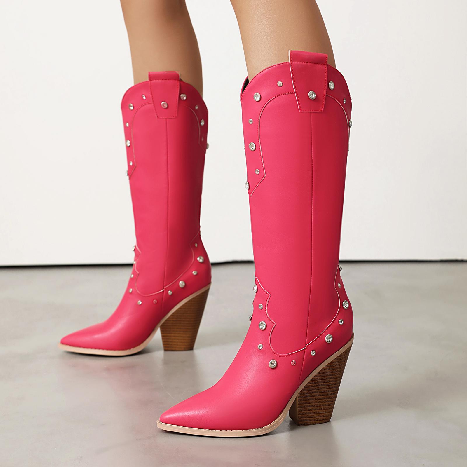 Kvinners Western Boots Crycle Mid Calf Boots 9.5cm Utskjærte Hæler Sko Retro Fritidssko cm fersken