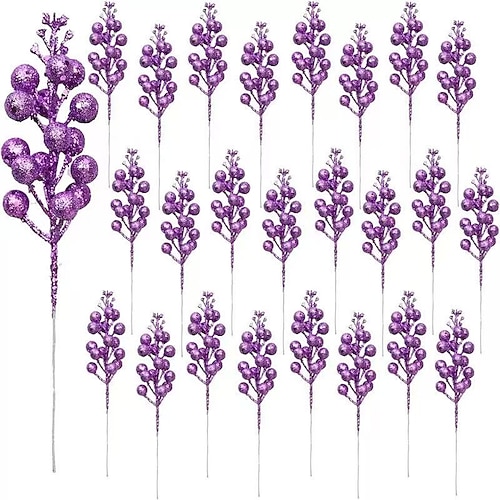12 steli di bacche natalizie, rami di poinsettia dorati glitterati con bacche e foglie, eleganti fiori di plastica per albero di Natale, ghirlande, feste e decorazioni per la casa