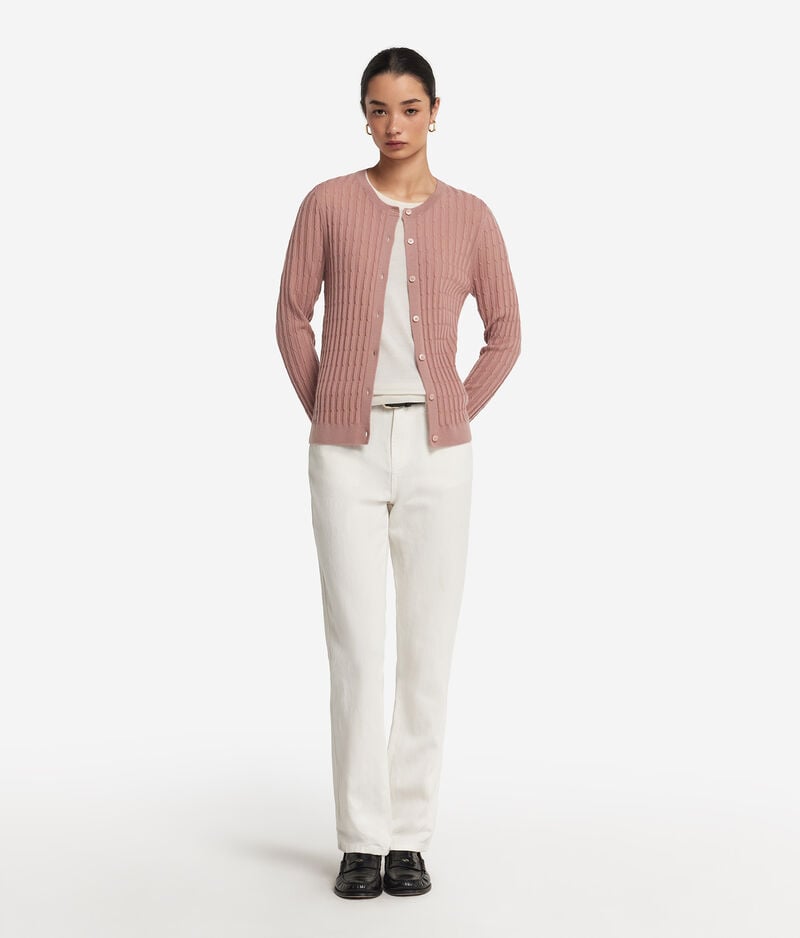 Falconeri Golfino con lavorazione a treccine in Cashmere Ultrafine Donna Sale Rosa Taglia S