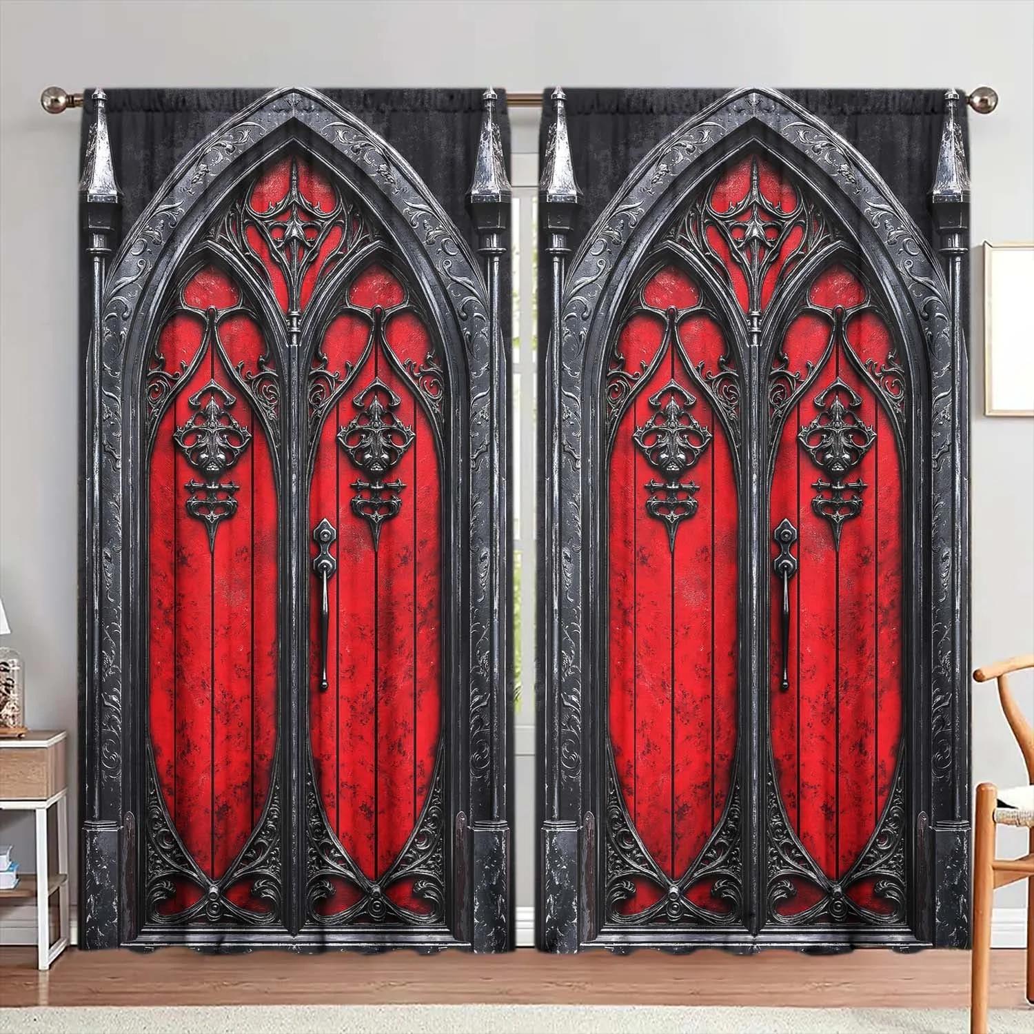 2 Panels Gothic Style Castle Windows Pattern Window Curtain - Artistic Home Decoration Curtains All Season Decorative Curtains