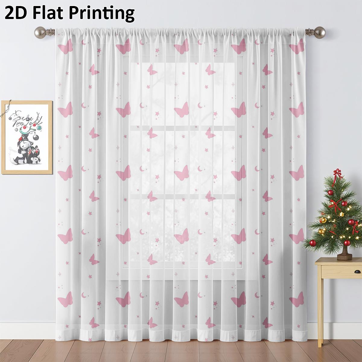 Dreamy Girl Heart Butterfly Moon Star One-Piece Window Curtain Rod Included Sweet Atmosphere Decorative Window Sheer