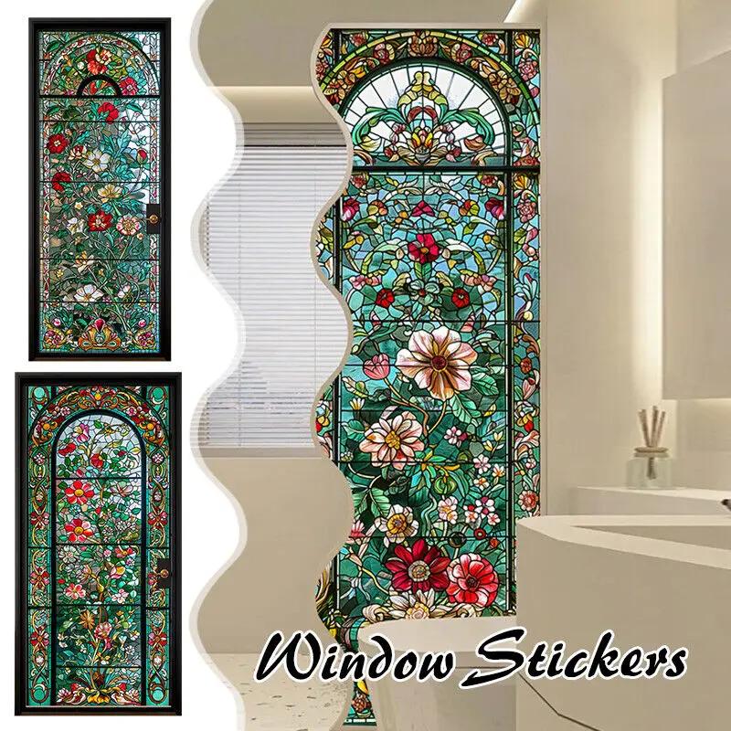50x120cm Retro Luxury Rose Stained Glass Frosted Window Film Window Stained Film Adhesive Backing Stickers Home Decorative