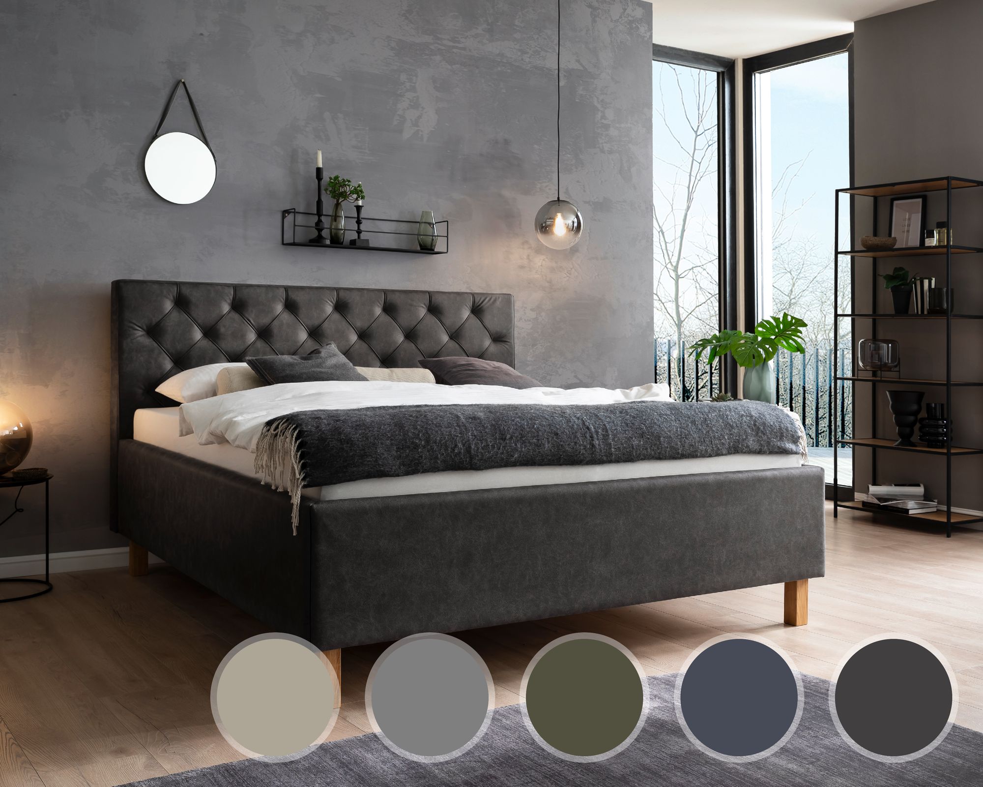 meise.möbel »San Remo« Polsterbett mit Bettkasten 180x200 cm / beige / Holzfuß massiv, Eiche hell / ohne Matratze