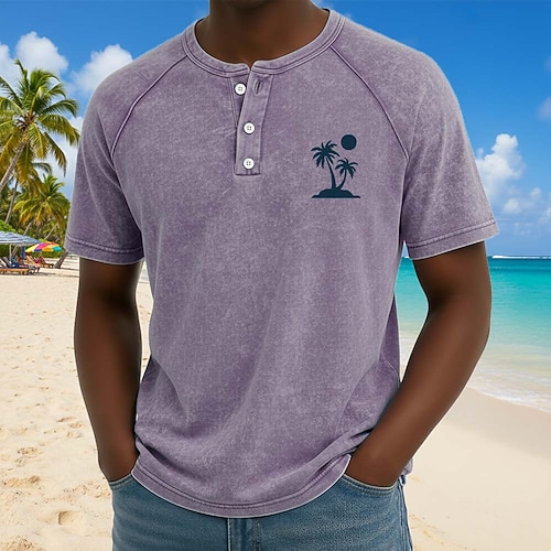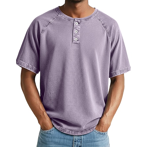 Per uomo Albero di Cocco Lavato Maglietta Top Henley Camicia lavata Manica Corta Vintage Designer Casual Casuale Quotidiano All'aperto Estate Primavera Tutte le stagioni Blu chiaro Viola Grigio Henley