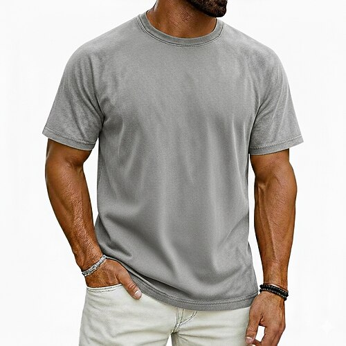 Per uomo Maglietta di cotone Camicia lavata Maglietta Manica Corta Girocollo Estate Primavera Tutte le stagioni Tinta unica Vintage Casual Angosciato Stile Vintage Lavato Casuale Quotidiano Streetwear