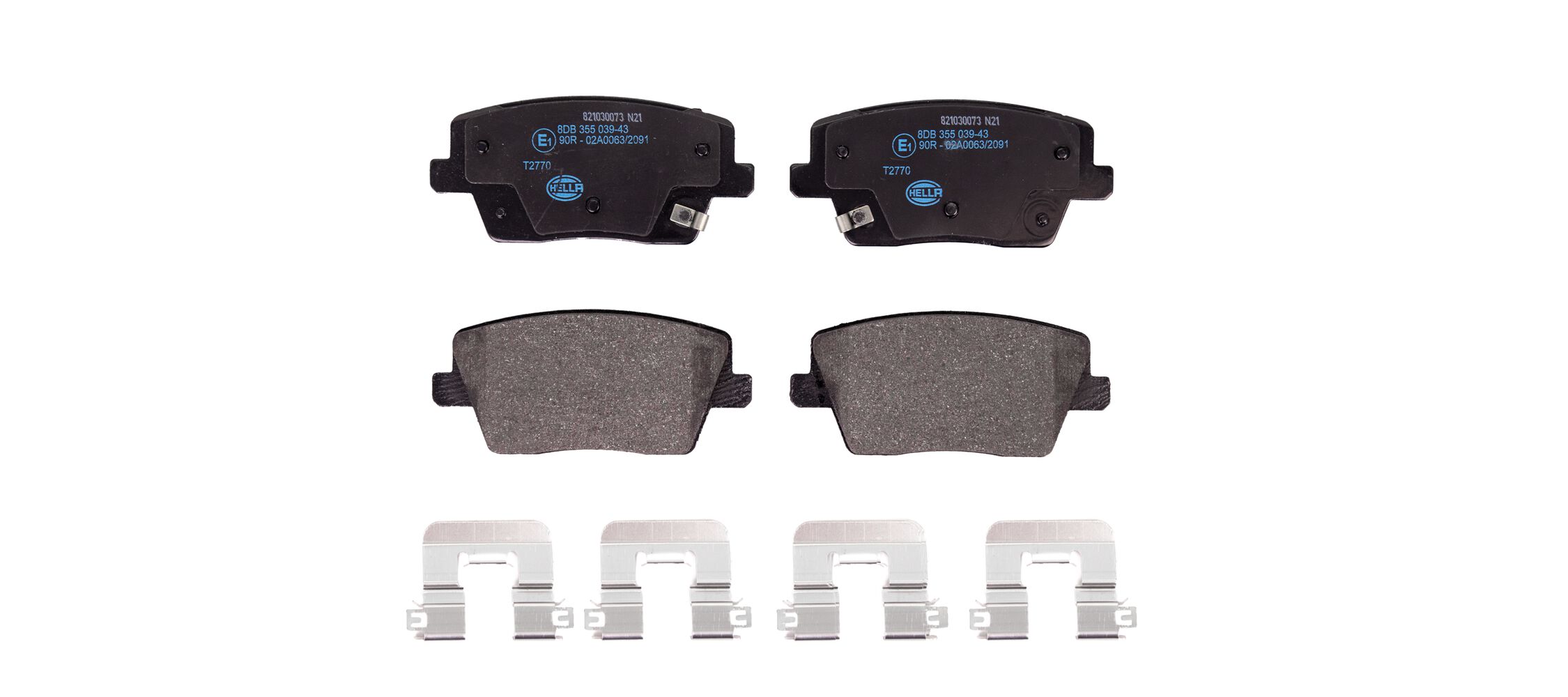 HELLA Bremsbelagsatz, Scheibenbremse hinten rechts links mit Zubehör für HYUNDAI AMC MDB4083 LVXL2038 T2770 8DB 355 039-431