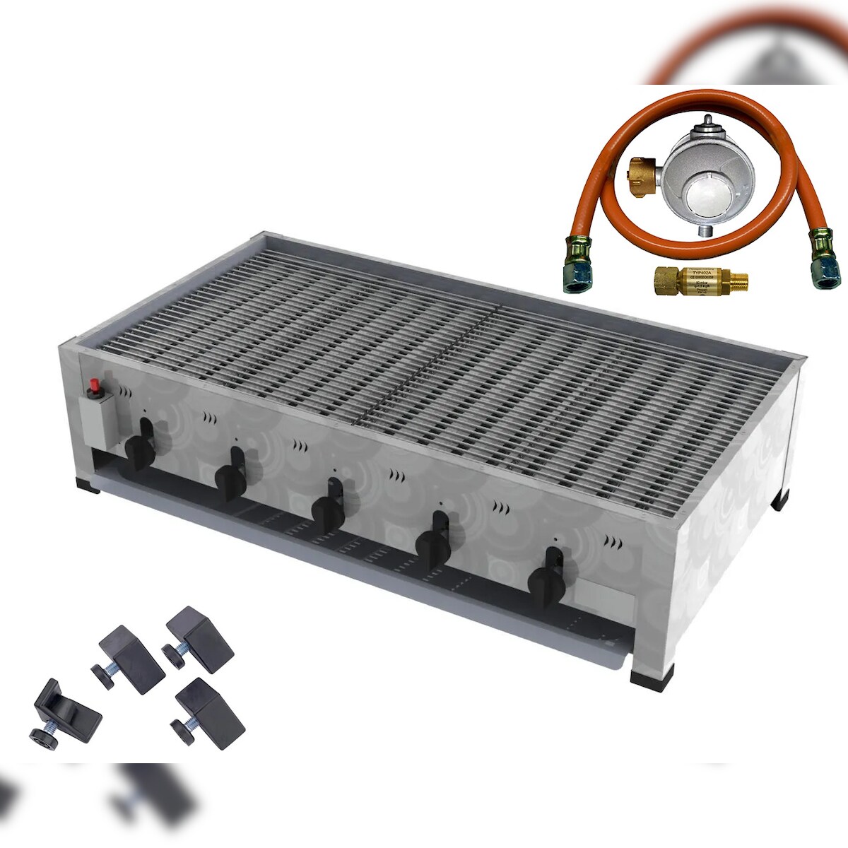 ChattenGlut ChattenTec Professional doppelwandiger Gastrobräter 5-flammig Tischgerät 20 kW, Flüssiggas 980x530x280 mm mit Gewerberegler und Rost