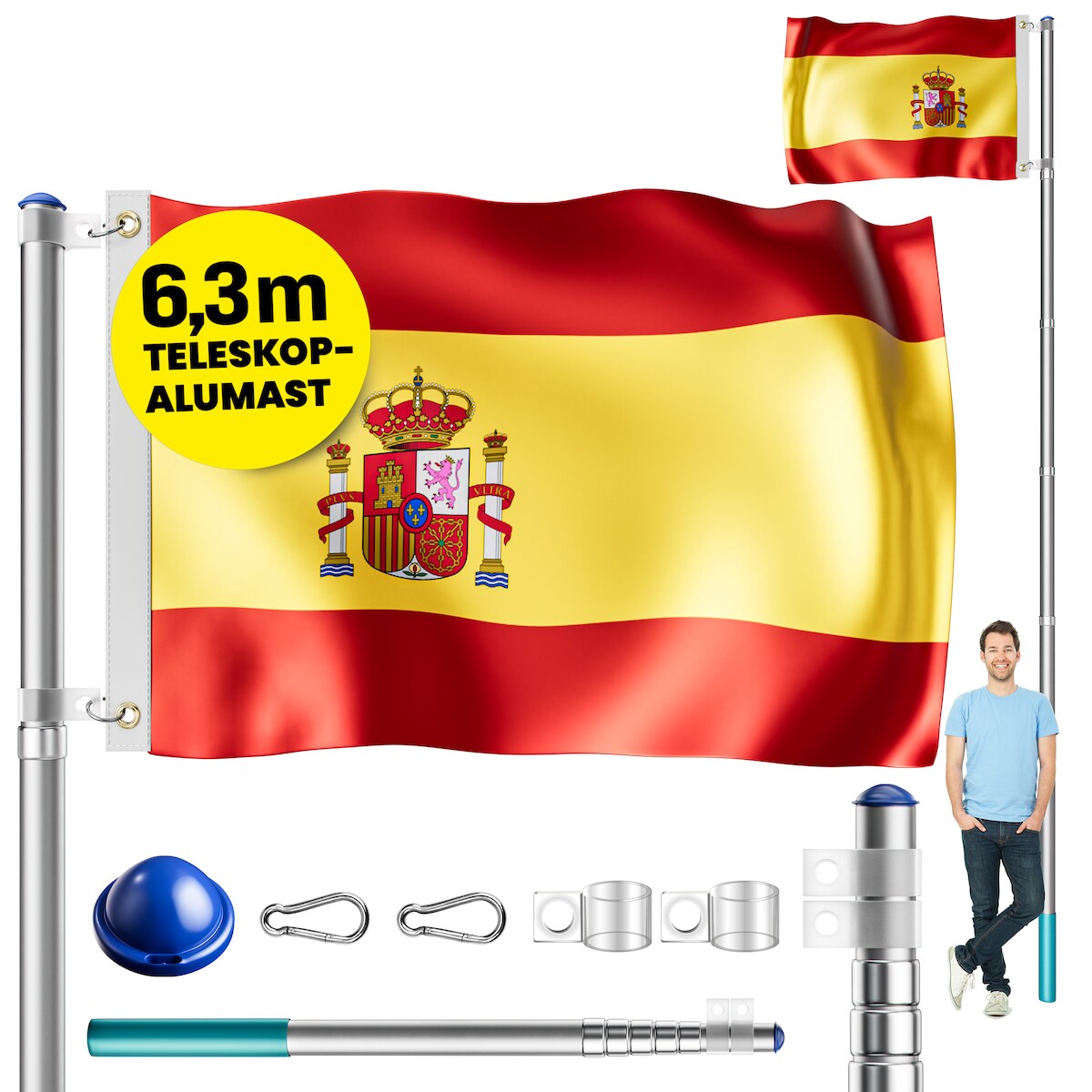 MONZANA® Fahnenmast Aluminium Teleskop 630cm Bodenhülse 60cm inkl. Flagge Flaggenmast Mast Flagge Alu