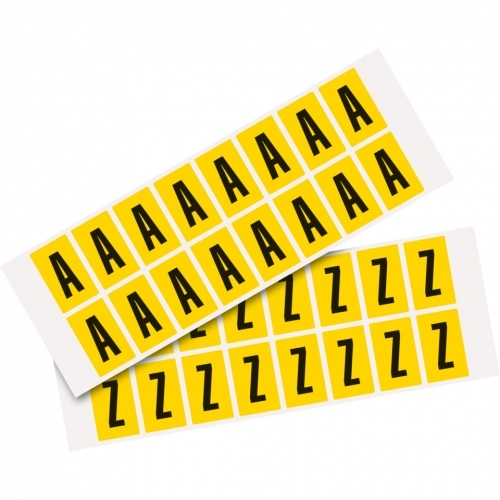 Aufkleber I Kombipackung Buchstabe A-Z, gelb/schwarz, Folie, SH 25mm, 22x36mm, 16 je Buchst./PAK