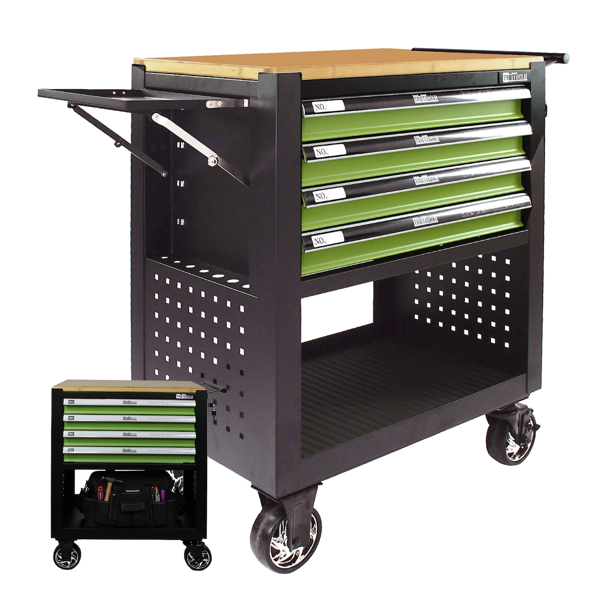 TRUTZHOLM Werkstattwagen Profi Compact unbestückt 85 x 68 x 46 cm Holzplatte 4 Schubladen Lochwand Ablage grün