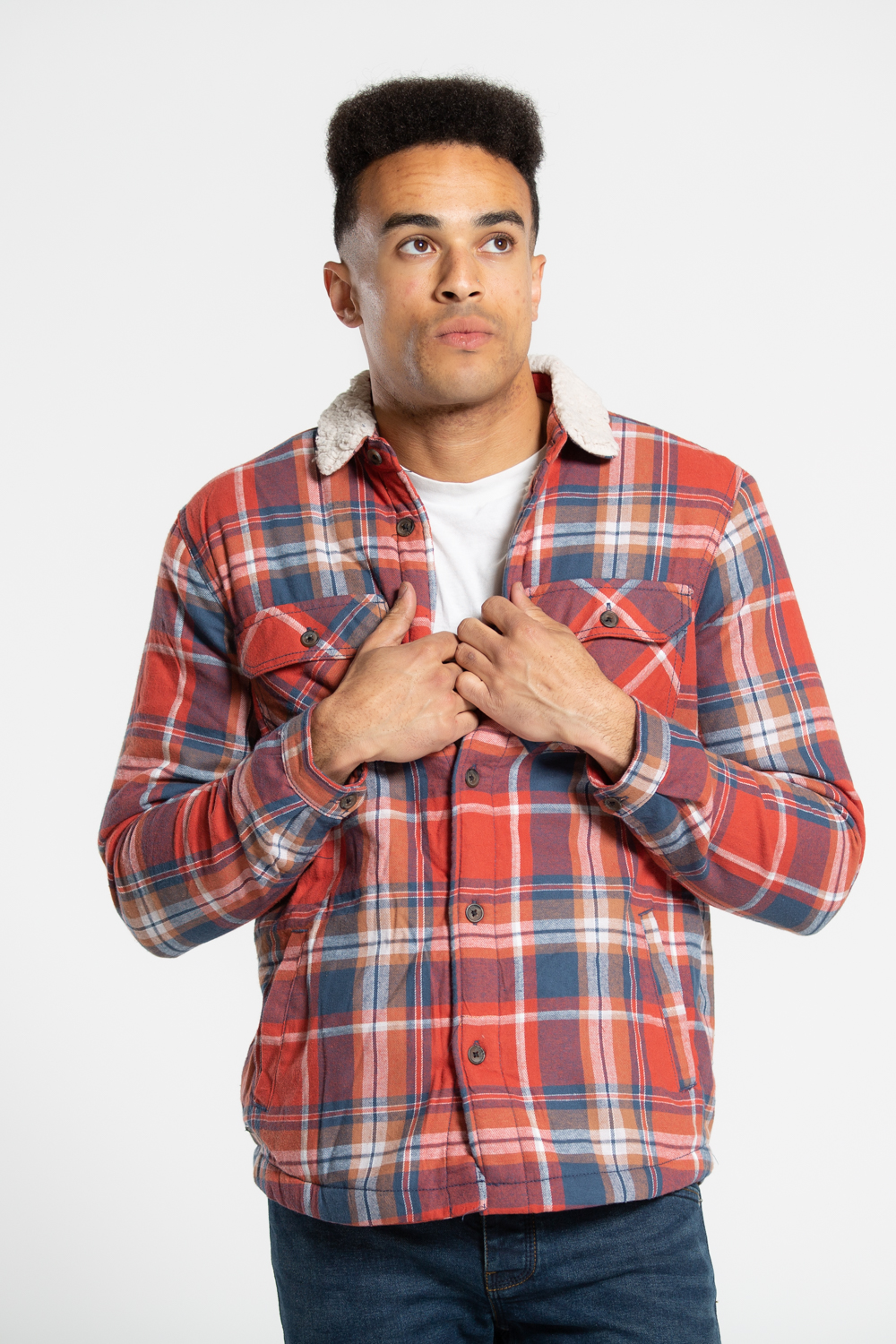 Tokyo Laundry Mens Cotton Long Sleeve Padded Check Shirt With Sherpa Lining - Rust - Size Large | Tokyo Laundry Sale | Discount Designer Brands