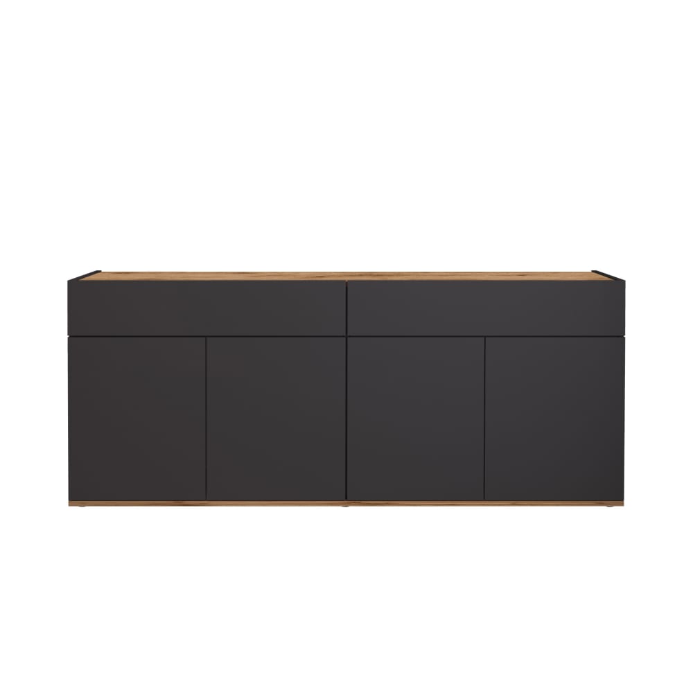 Credenza effetto legno con 3 ante scorrevoli in rattan e 2 cassetti