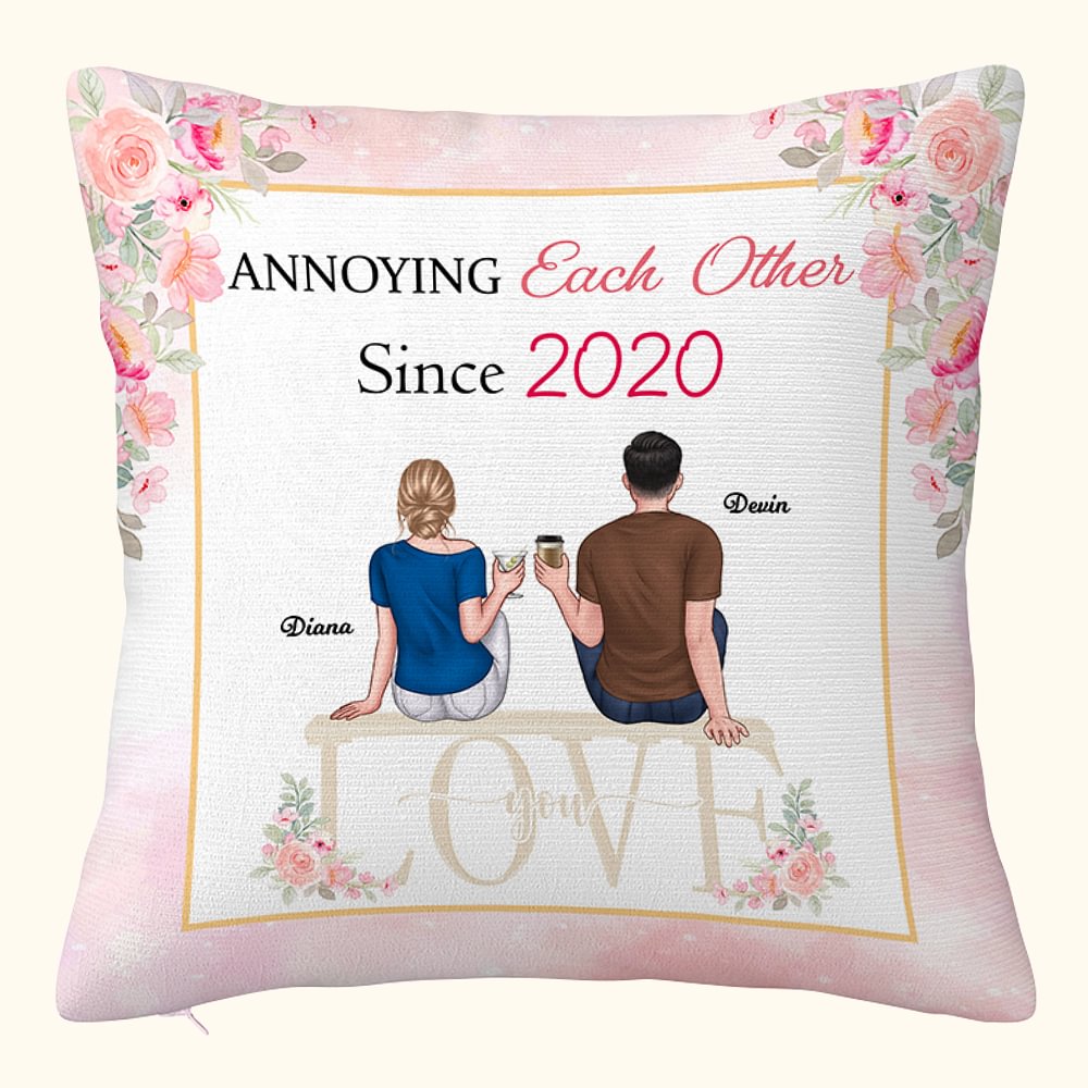 Personlig par som sitter på stoler Cheers Flower Home Decoration Love Chair Annoying Each Other Throw Pillow Cover Gaver til par Sofa Decor